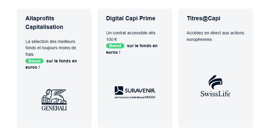 - Capitalisation (3 contrats) : Altaprofits Capitalisation, Digital Capi Prime, Titres@Capi