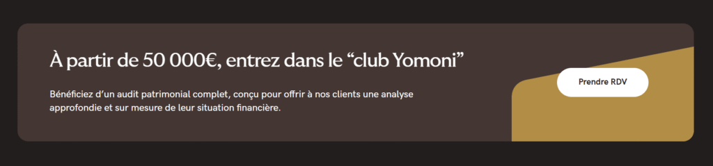 Il est important de souligner que Yomoni ne propose ni compte courant, ni carte bancaire, ni assurance habitation ou téléphone mobile.