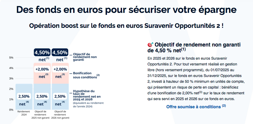 Le contrat s’appuie sur le fonds en euros Suravenir Opportunités 2, un support de référence sur le marché.