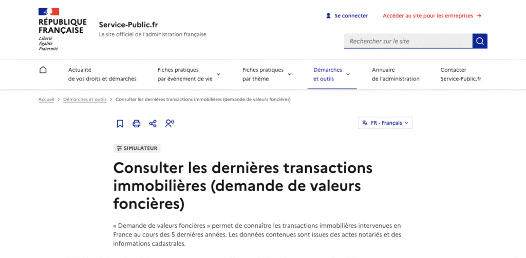 Cette base de données publique, mise en ligne par le gouvernement, vous donne un accès gratuit aux transactions notariées réalisées en France au cours des 5 dernières années.